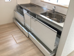 キッチンの引き出しもソフトクロージングを採用しており、IHコンロを設置。旬の設備に人気の平屋を組み合わせたイチオシ物件です!
