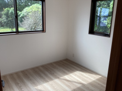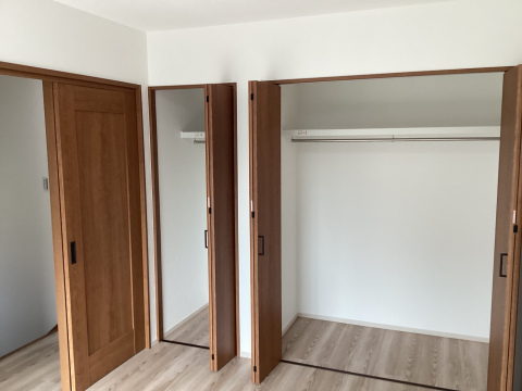 奥の角地に立っているため、一通りがほとんどなくプライベート空間として重視したい方に最適な立地です☆また、室内の収納も贅沢に確保していて、大きなフロントガラスや樹脂サッシ・ペアガラスを採用しているため、設備に拘りも見せています!!