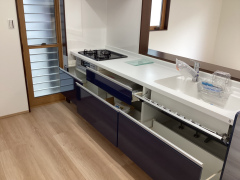 カウンターキッチン・センターオープンのフロントガラス・樹脂サッシ・LOW-Eガラスを採用している等、